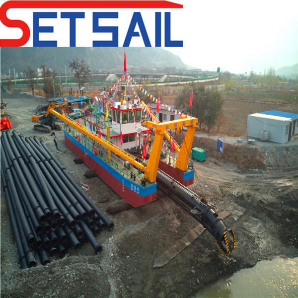 | Set Sail cutter suction dredger is widely used for dredging sand . mud. gravel in the river . lake. sea. Pond . lagoon reservoir port constructure and inland waterways so on dredging project . configuration of Cummins marine diesel engine and Shijiazhuang dredge pump. this model dredger can keep high capacity and low failture. can use the shortest working time to get the biggest profit for the customers Besides according to the customers request to equiped GPS control system . all realtime data are collected display on the secrren form the sounder depth . water flow meter and all kinds of machinery pressure meter . it make the easier for checking all equipment working situation . |